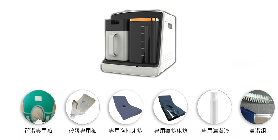 內容包含主機/泡棉床墊/抗菌矽膠褲一件/智潔專用褲一盒(兩件),並享有主機保固一年,耐用十年。