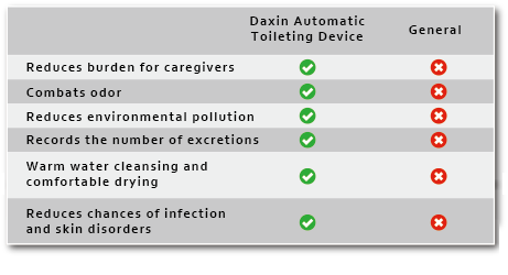 Daxin’s Automatic Toileting Device revolutionizes traditional cleaning methods and relieves family members and health workers from the trouble of periodically changing diapers. The Automatic Toileting Device can also effectively reduce infection and provide a cleaner, more comfortable experience for long-term bedridden individuals.